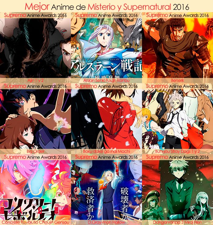 Eliminatorias Nominados a Mejor Anime de Misterio y Supernatural 2016