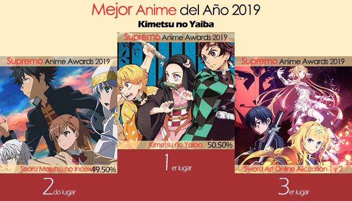 Sword Art Online: Alicization 1 y 2 es el tercer lugar de Supremo Anime Awards 2019, Es la tercera y cuarta temporada de Sword Art Online donde Kirito despierta en un amplio y fantástico mundo en el que un chico llamado Eugeo parece conocerlo. Y aunque el joven es un simple NPC, parece poseer emociones tan complejas como las de los seres humanos. Kirito se sorprenderá recordando ciertos acontecimientos de su propia niñez en los que aparecen su nuevo amigo y una chica llamada Alice, ahora tendrá que solucionar la guerra del inframundo, solo por Supremo no Fansub.